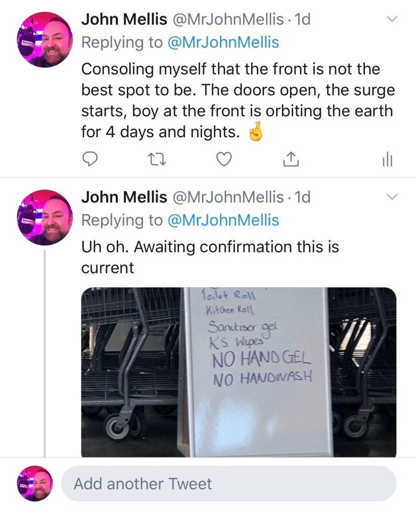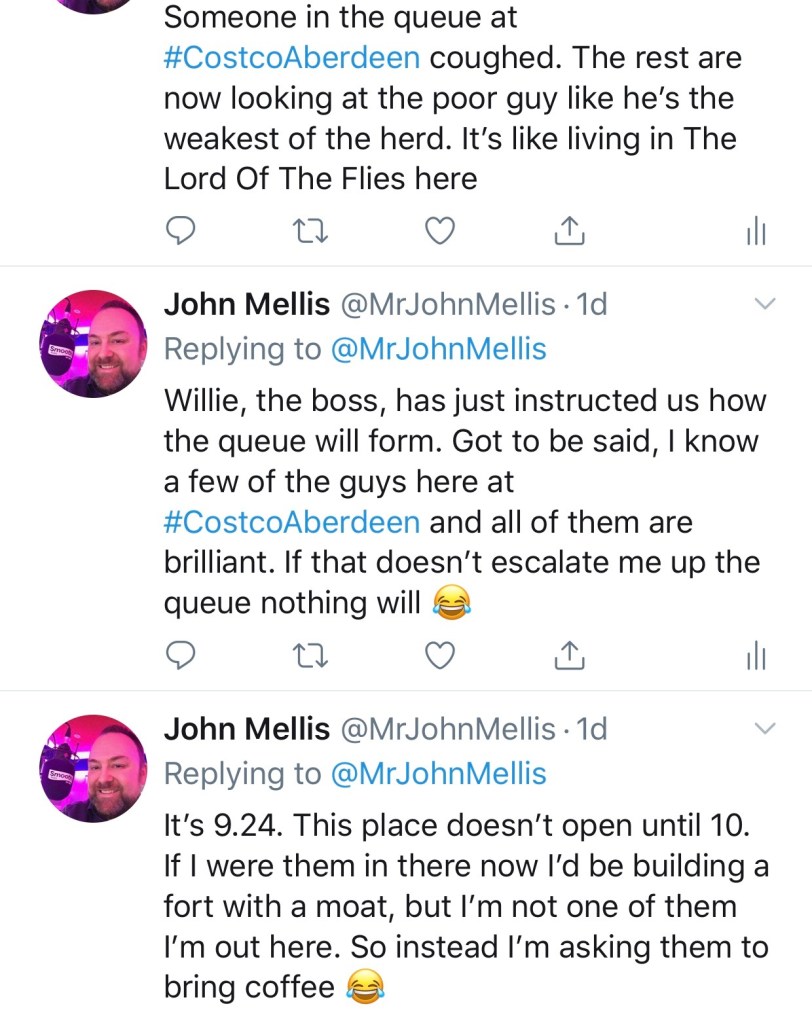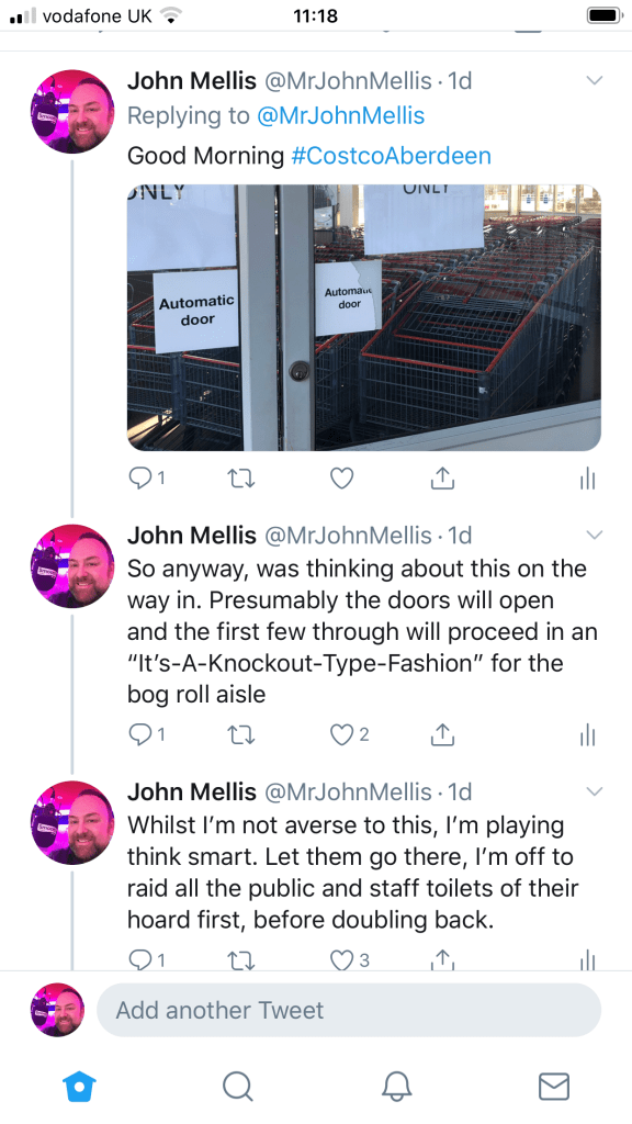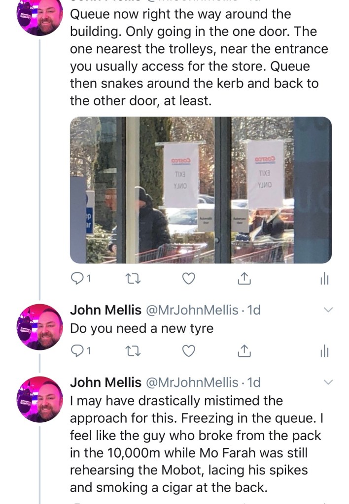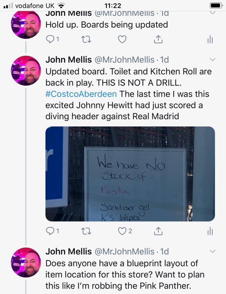 All things considered, a relatively pain-free experience, but it was bizarre waiting for that queue to form. No-one wants to be seen to be first – Chief Panic Buyer – but once that one person does break from cover, the rest follow VERY quickly for fear of their shopping trip completely unwinding. Costco are now limiting purchases to one item per trolley. So, no more than one pack of toilet roll etc. Luckily, that distinction isn’t so severe as to ban you from buying beer, wine, and spirits!