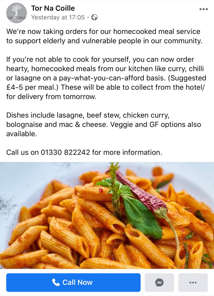 Locally, restaurants and cafes have mobilised fantastically quickly to become take away and home delivery outlets.