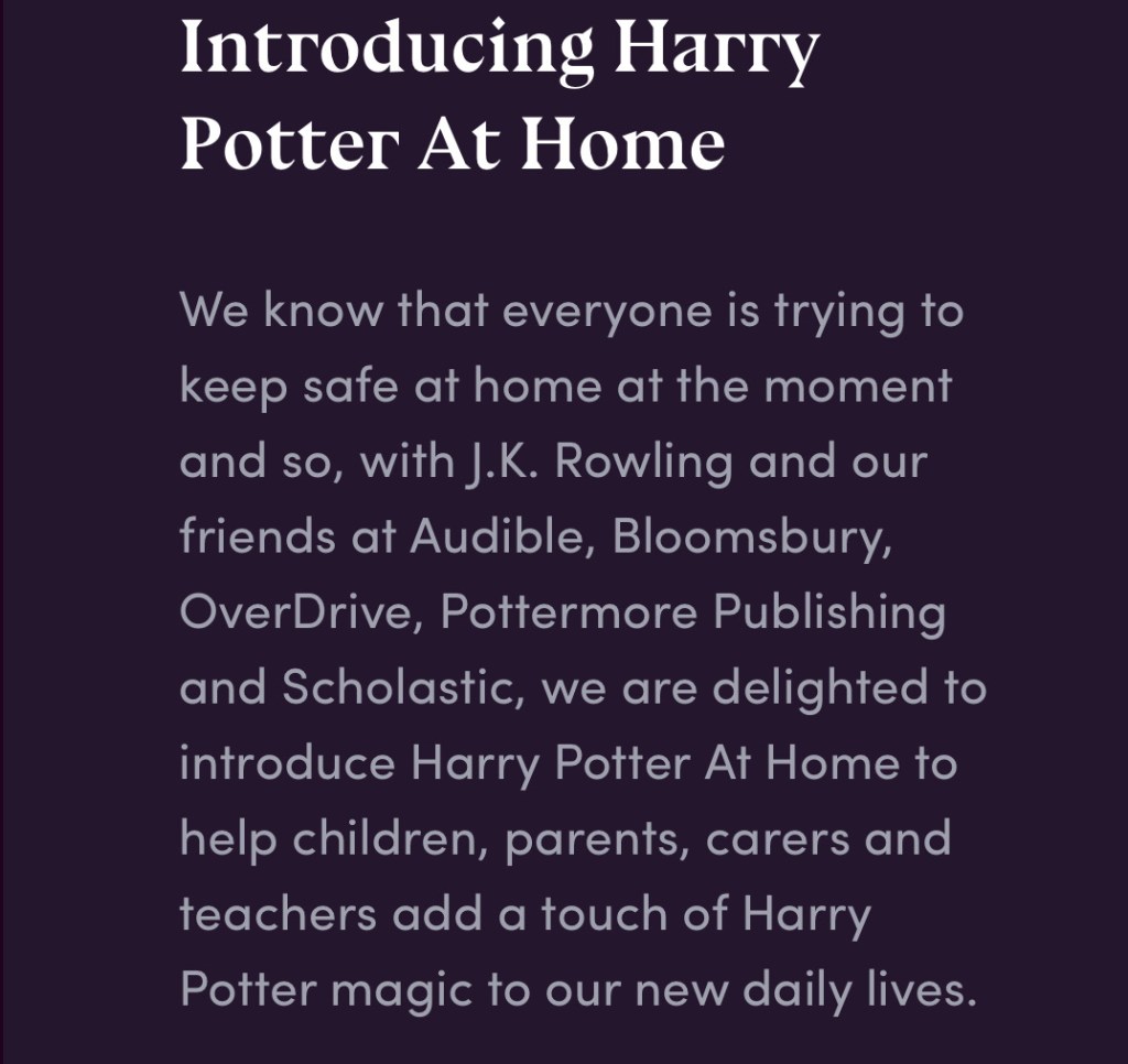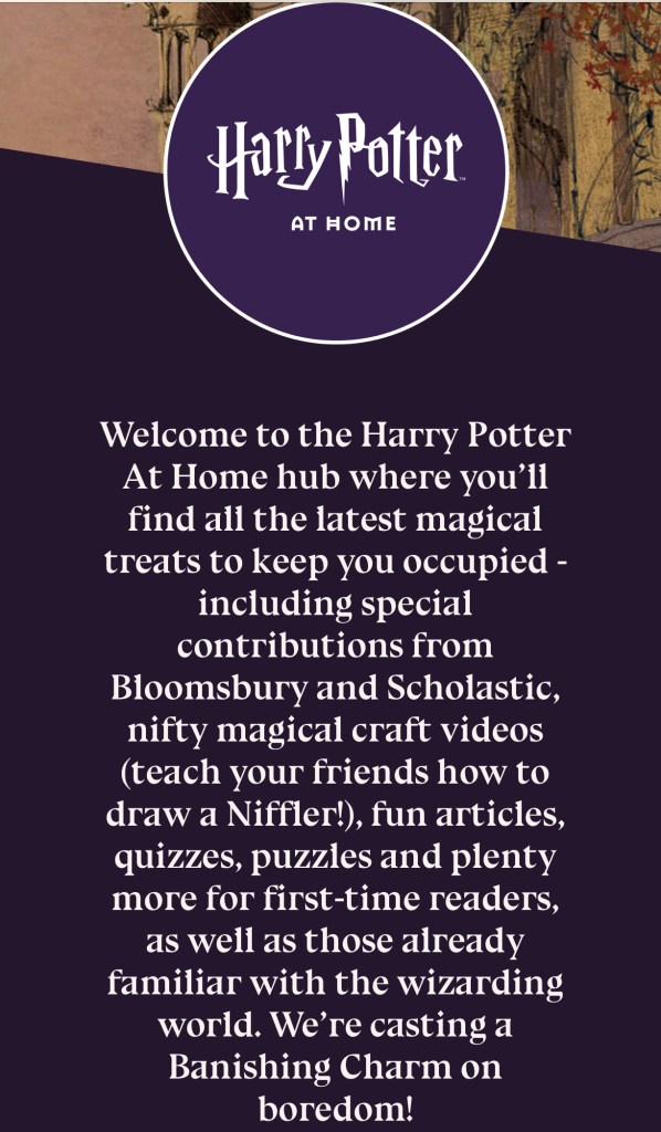 I think this is a lovely thing. I won’t lie. There’s a shop, so potentially a cost element attached, but there are some great resources which would ordinarily cost that have been opened up for free, and I for one know a little girl who’ll be over the moon to learn about Harry Potter At Home. It’s just a shame she’ll have to spend that entire time online in the cupboard under the stairs simply to make the process authentic.