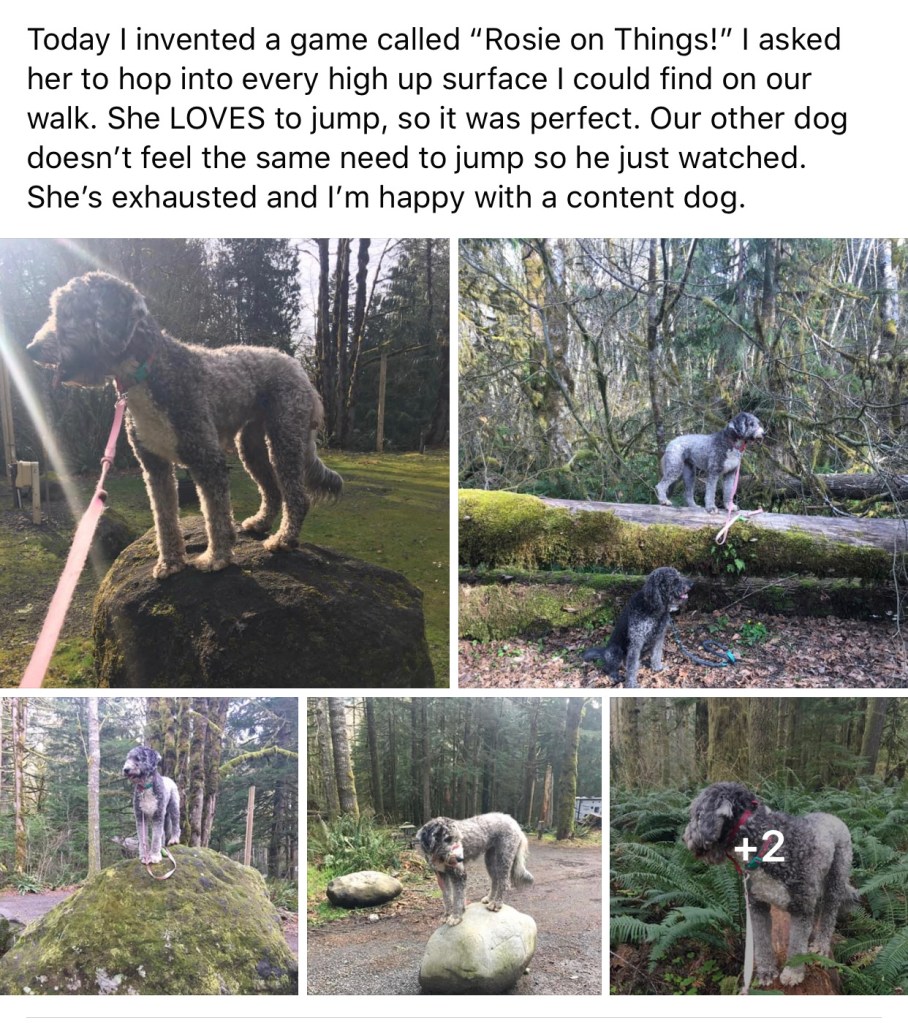 I was feeling generous at the time. My word of caution – IF, for your one hour of exercise time you’re out walking your dog encouraging them to jump up on top of stuff, the police will probably ask you what you’re up to and where you’ve come from, with a view to returning you there and the dog to its rightful owner.