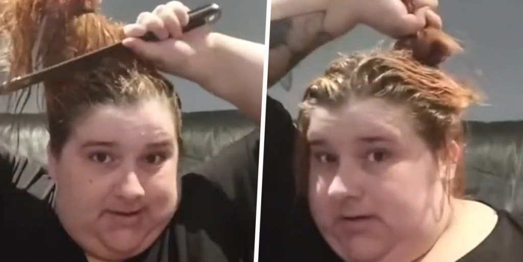 This woman is so fed up with her hair, she’s giving herself a home haircut. With a kitchen knife.