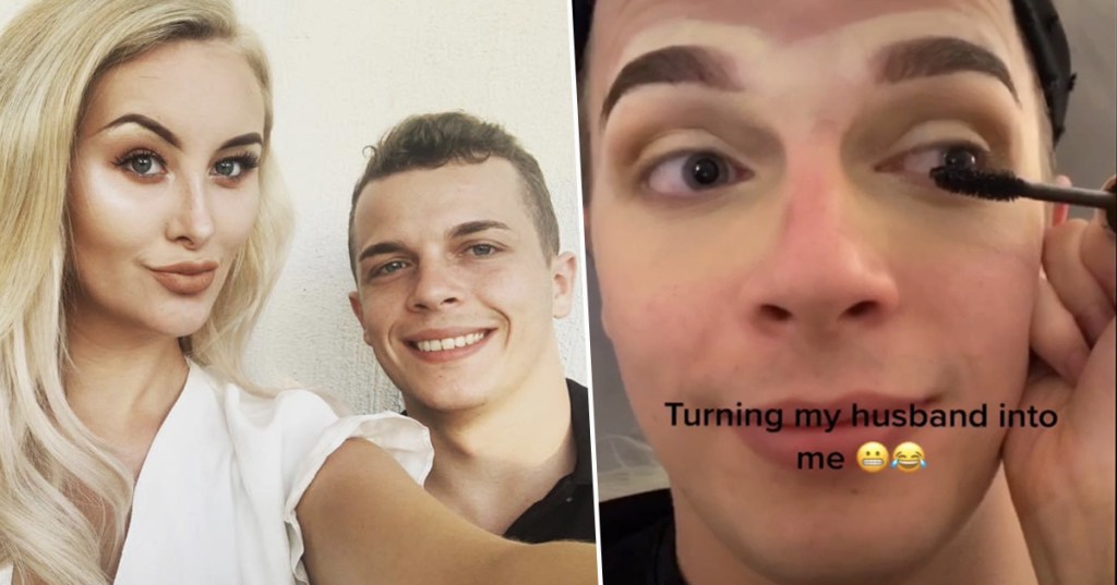 This newly married couple found themselves at a loose end, so the wife suggested she make over her husband to look exactly like her, and he agreed.