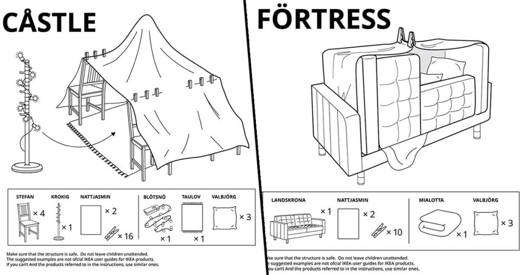 Finally today in The Useful, literally save this for a rainy Lockdown day. IKEA have released instructions on how to build 6 home furniture forts.