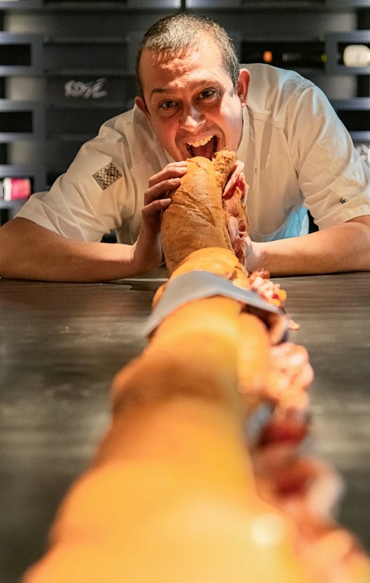 Yes, this chef has designed a 2 metre long sandwich to enable you to be exactly the right distance away from anyone else. Well, it’ll work at the beginning, but surely the moment you take a bite, you’ve entered the danger zone. No, no. I think the only way to categorically guarantee everybody’s safety, they stay at home and you munch that bad boy down on your own.