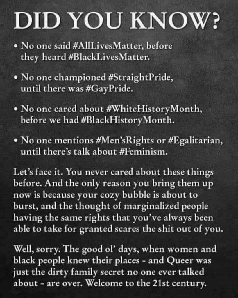 The point is, everyone has different viewpoints / feelings and that’s okay.