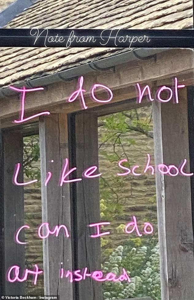 I thought we’d start with this today, to prove no matter who you are, home-schooling will impact your life in some way. In this instance it’s Victoria Beckham’s daughter Harper who’s apparently proving to be the issue. Here she is with Mum, looking like butter wouldn’t melt.