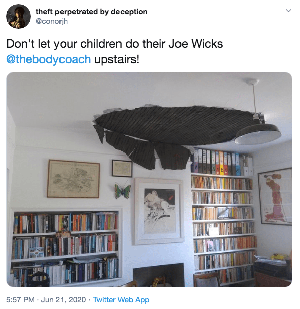 On the subject of fitness trends, one of the biggest, from really early on in Lockdown has been Joe Wicks daily PE workout. He was already hugely successful with his Lean In Fifteen series of books, but this effort has catapulted him into another dimension, with offers from both the BBC and Channel 4 to screen the workouts, which Joe’s turned down because he reaches more people via youtube. I’ve placed this item here in ‘The Useful’, but really hope it doesn’t become an issue for you. It’s a simple piece of advice. Don’t let the kids workout with Joe upstairs.
