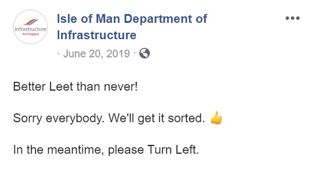 The road painters in The Isle Of Man can’t spell awfully well. File this under ‘You had one job!”